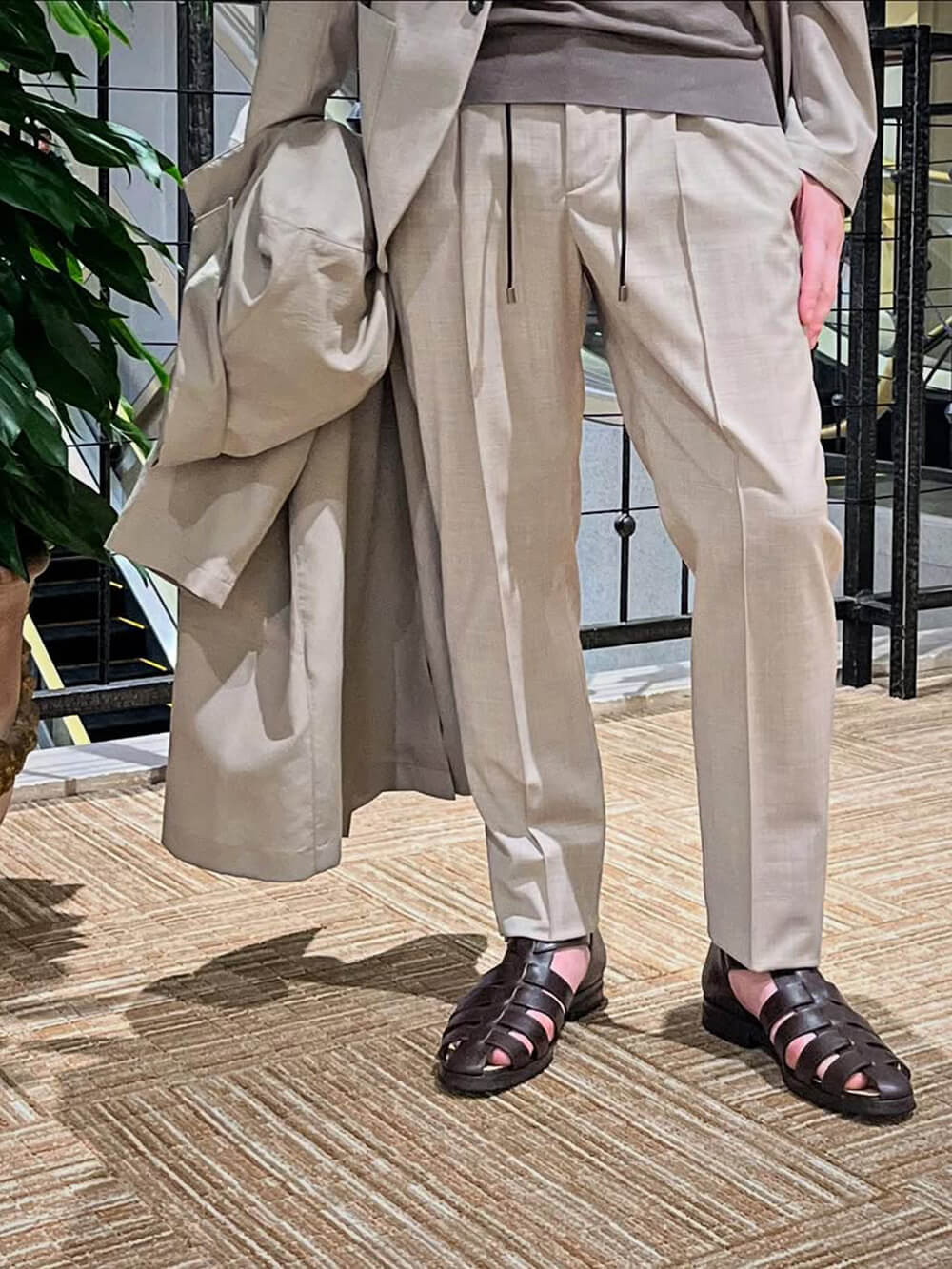 giab's ARCHIVIO(ジャブスアルキヴィオ)ring別注MASACCIO テクノウール ストレッチ セットアップ対応 1プリーツ パンツ A6425