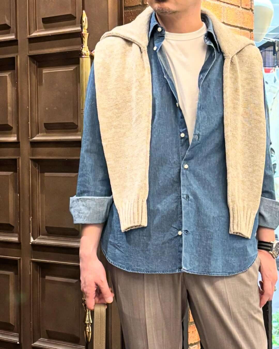 カジュアルシャツはウールパンツと合わせると綺麗な雰囲気です!!