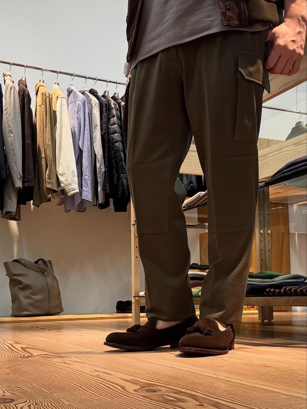 ショート丈のブルゾンにはカーゴパンツが相性抜群なんです。