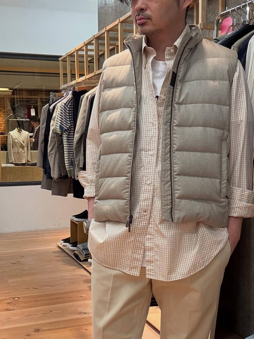 ダウンベストはジャケパンやスーツスタイルにも使えるので持っていると便利!
