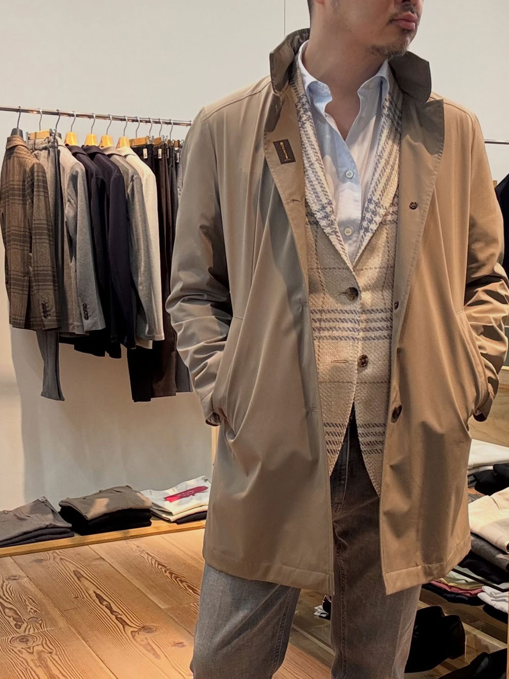 アウターはムーレーの"HEKTOR"。オンタイムからカジュアルまで網羅できる汎用性抜群のコート。