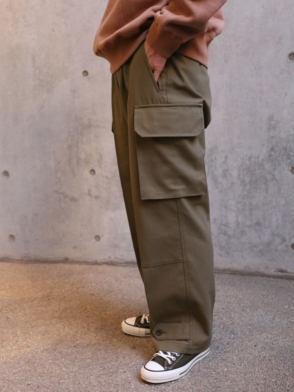 スウェットにカーゴパンツ。