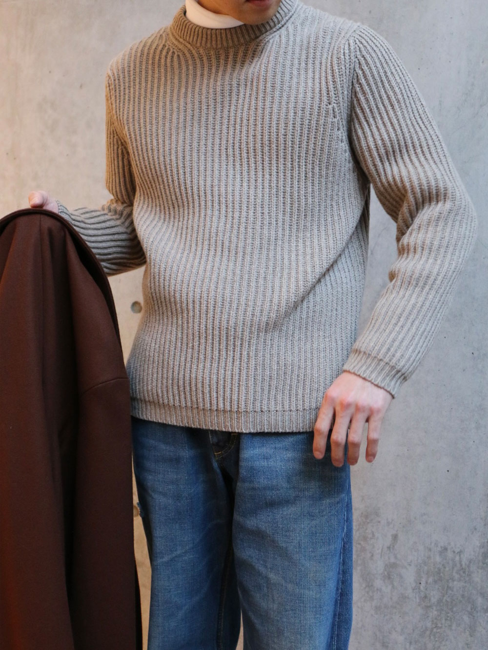 garoh(ガロウ)garoh knit02 ローゲージカシミア フィッシャーマン リブ クルーネックニット