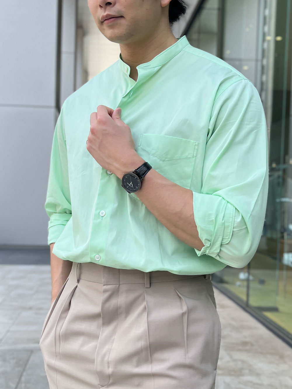 APPLETREES(アップルツリーズ)OPEN TRAVELER SHIRTS コットン ポプリン バンドカラーシャツ