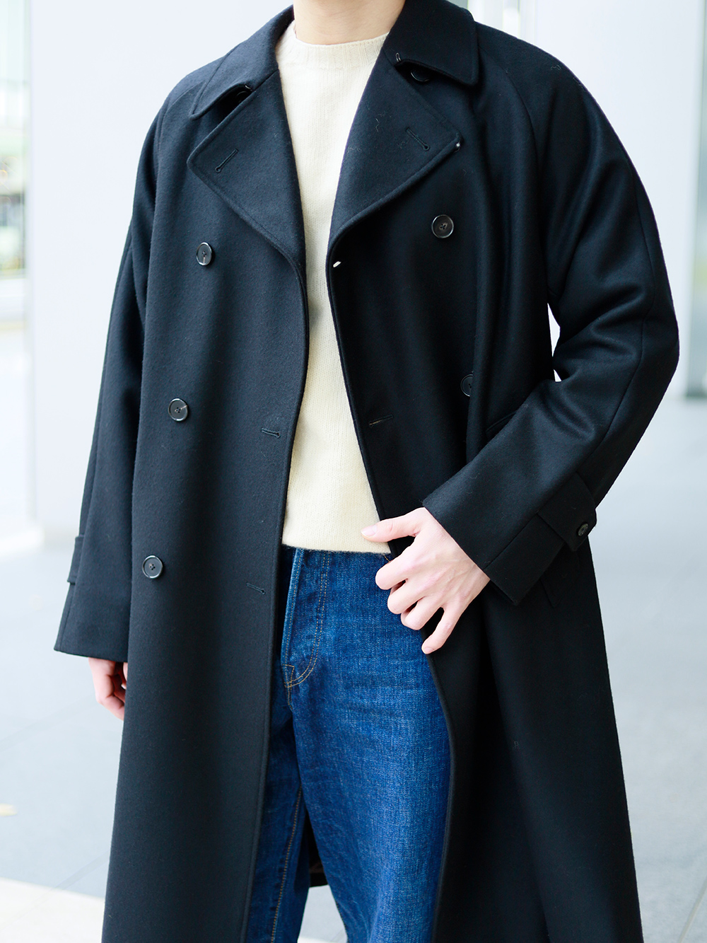 COHERENCE(コヒーレンス)FOUFOU II ウールカシミヤナイロン メルトンジャージー ダブルブレストコート