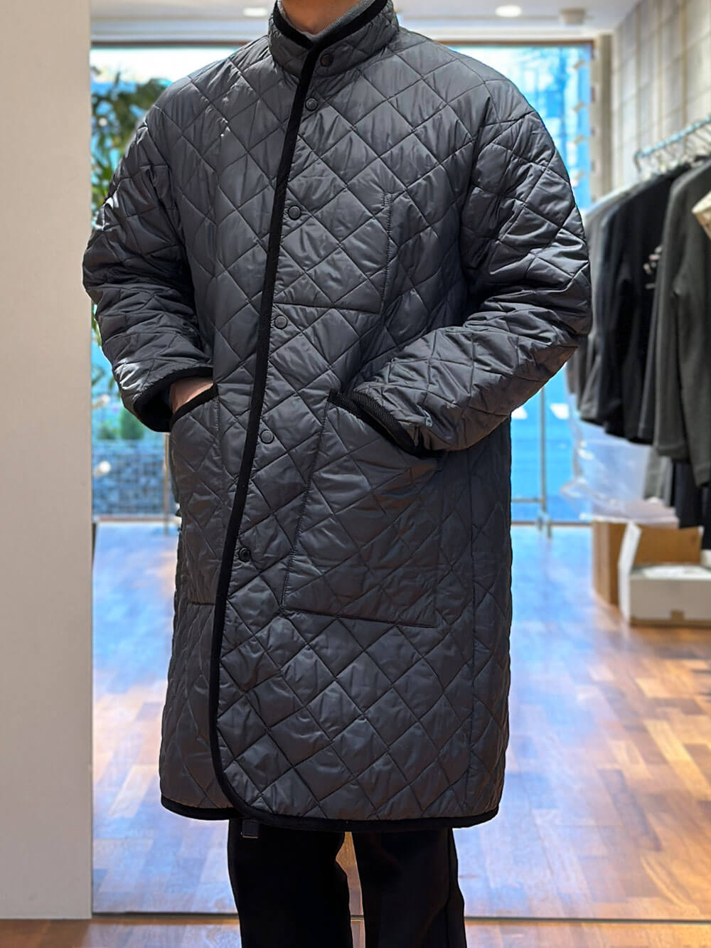 クラシックなモデルを現代的なフィットに調整されており、昨今の気分にピタッとハマるアウターです。