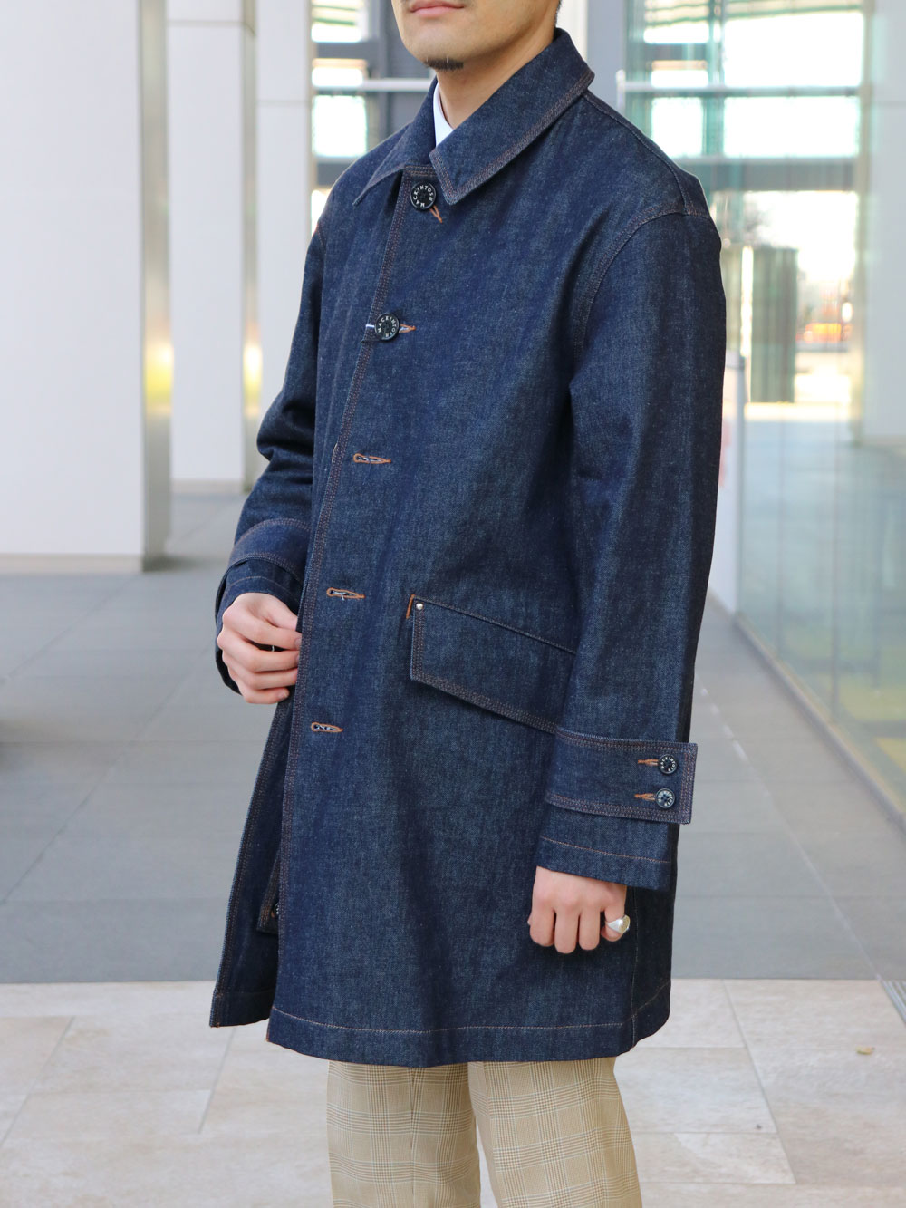 デニム生地のコートを着用してみました。 厚すぎず、薄すぎないちょうど良い生地です。 長いシーズン着用できそうですね。 カジュアルなコーディネートやスポーティなジャケットスタイルにも合うと思うので汎用性は高いと思います。 とてもオススメなので、ぜひ!
