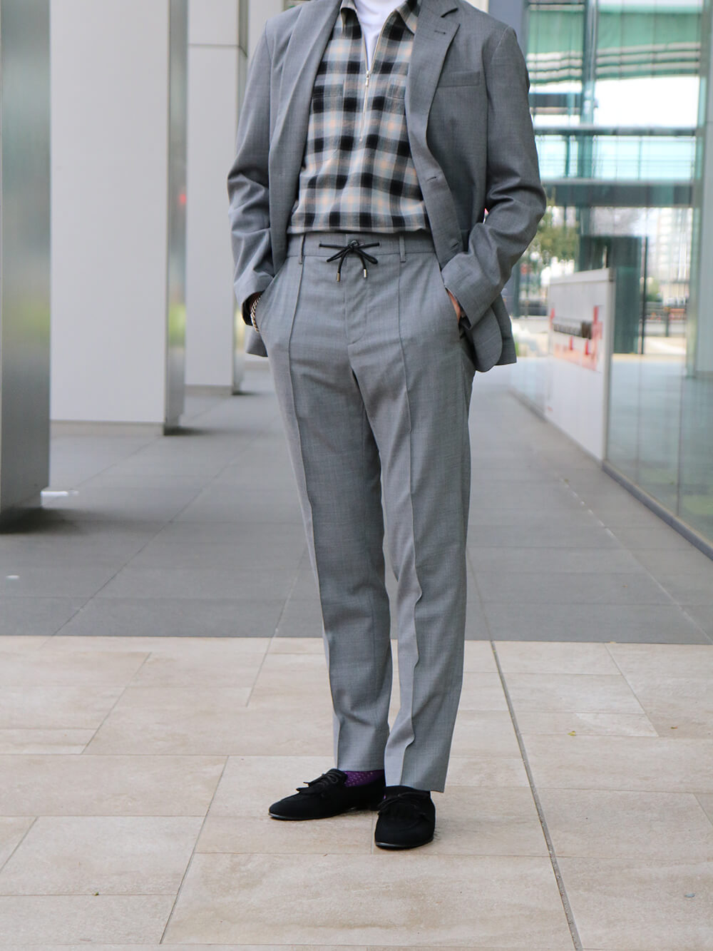 giabsarchivioのテクノウールセットアップを休日に着用するイメージでコーディネートを組んでみました。