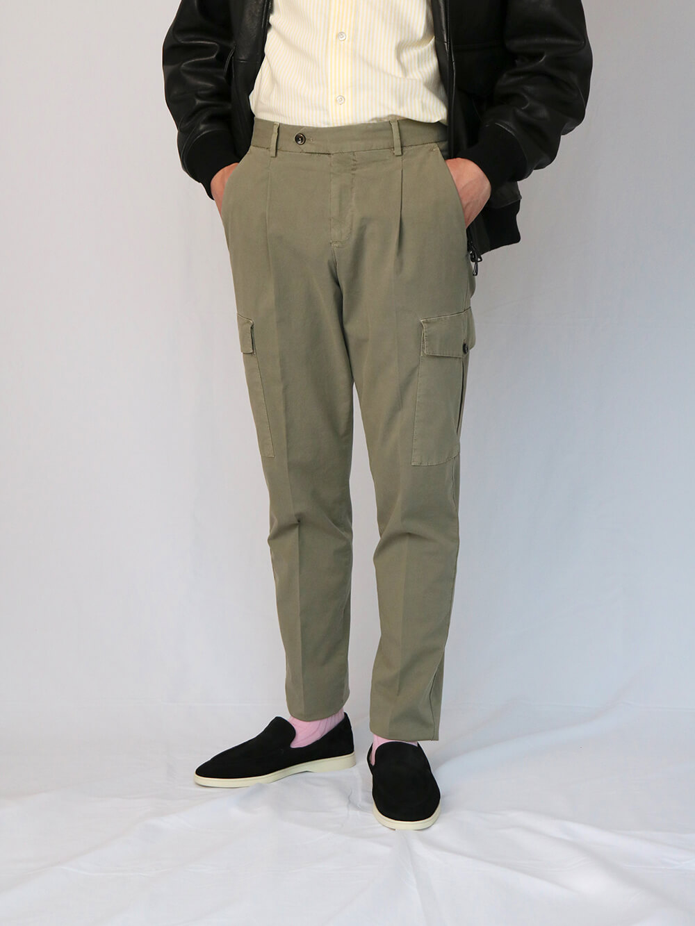 PT TORINO(ピーティートリノ)コットンストレッチ ポプリン ガーメントダイ 1プリーツカーゴパンツ UNION FIT/NK29