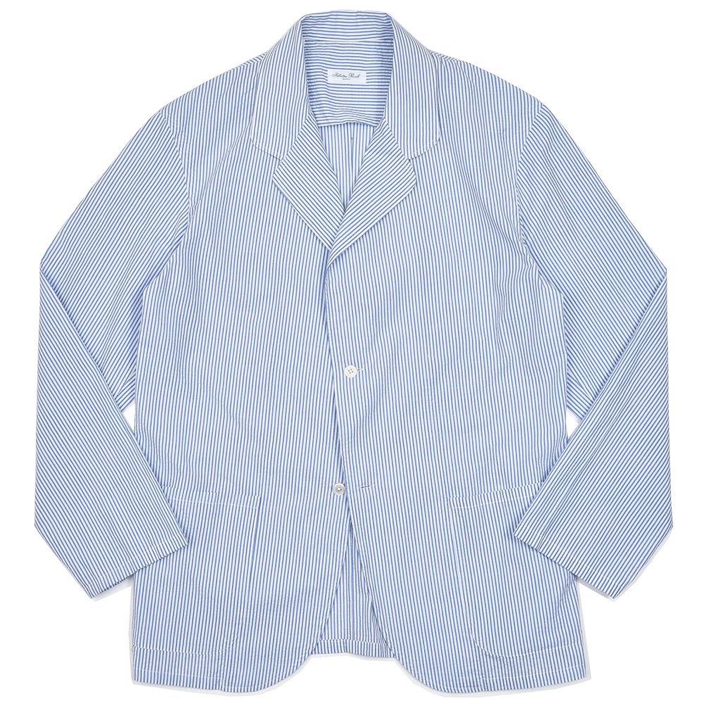 真夏でも活躍する軽い目付けのシアサッカーは、やや控えめな凹凸感に少し幅の狭いストライプがモダンな佇まいを作り上げます。
