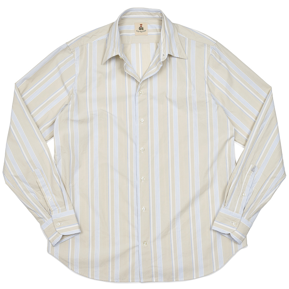 コットン素材を使用した、やや薄手ながらもパリッとしたハリのある質感のマルチストライプシャツは、ゆとりのあるFITを採用したレギュラーカラーモデルになります。一見すると端正なカジュアルシャツですが、サイズ感で現代的な味付けを施したインでもアウトでもサマになる一品です。 オールマシンメイドの最高峰に君臨するGUY ROVERのシャツは、絶対無二の着心地とシルエットに真似できないグッドプライスが身体にもお財布にも優しい、涙がこぼれそうになる完成度です。 【商品特徴】 ・ゆとりのあるシルエット ・レギュラーカラー ・パリッとしたタッチのコットン100%生地 ・オールマシンメイド ・イタリア製 ・水洗い可 |