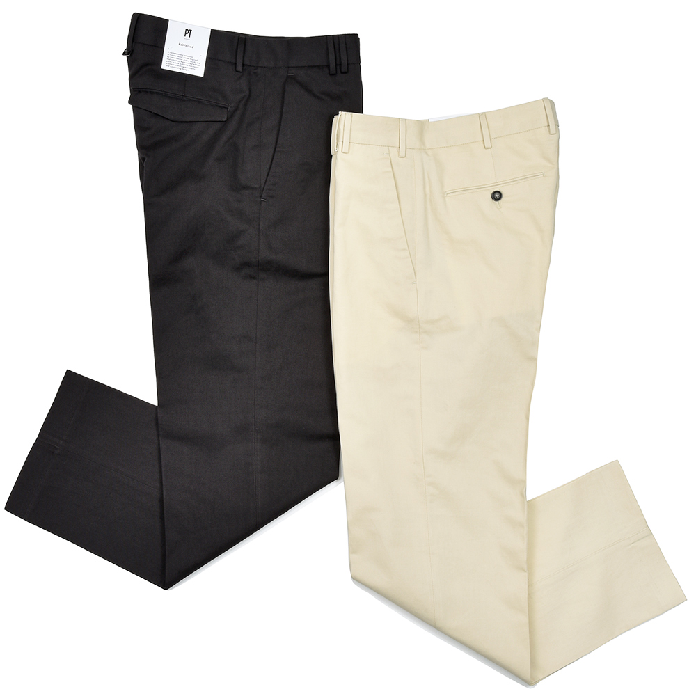 PTは、2008年にイタリアのトリノで「メンズクロージングにおいて最も重要なアイテムはパンツ」というコンセプトの下、パンツ専業メーカーとして誕生しました。 PT TORINO(ピーティー・トリノ)は、それまでクラシック一辺倒だったドレスパンツの世界に、幅広いデザインソースから取り入れた多彩なバリエーションを揃えました。 各モデルにテーマを設定し、独自のデザインでその世界観を演出。パンツの可能性を広げる多様性にくわえ、そこには美しいヒップラインとともに脚長効果も備えた完璧なシルエットが構築され、現代の魅力を存分に伝えます。 PTのブランドネームPT TORINOは、創業地であるトリノへのトリビュートとともに、究極のパンツを創るという強い意志が込められています。