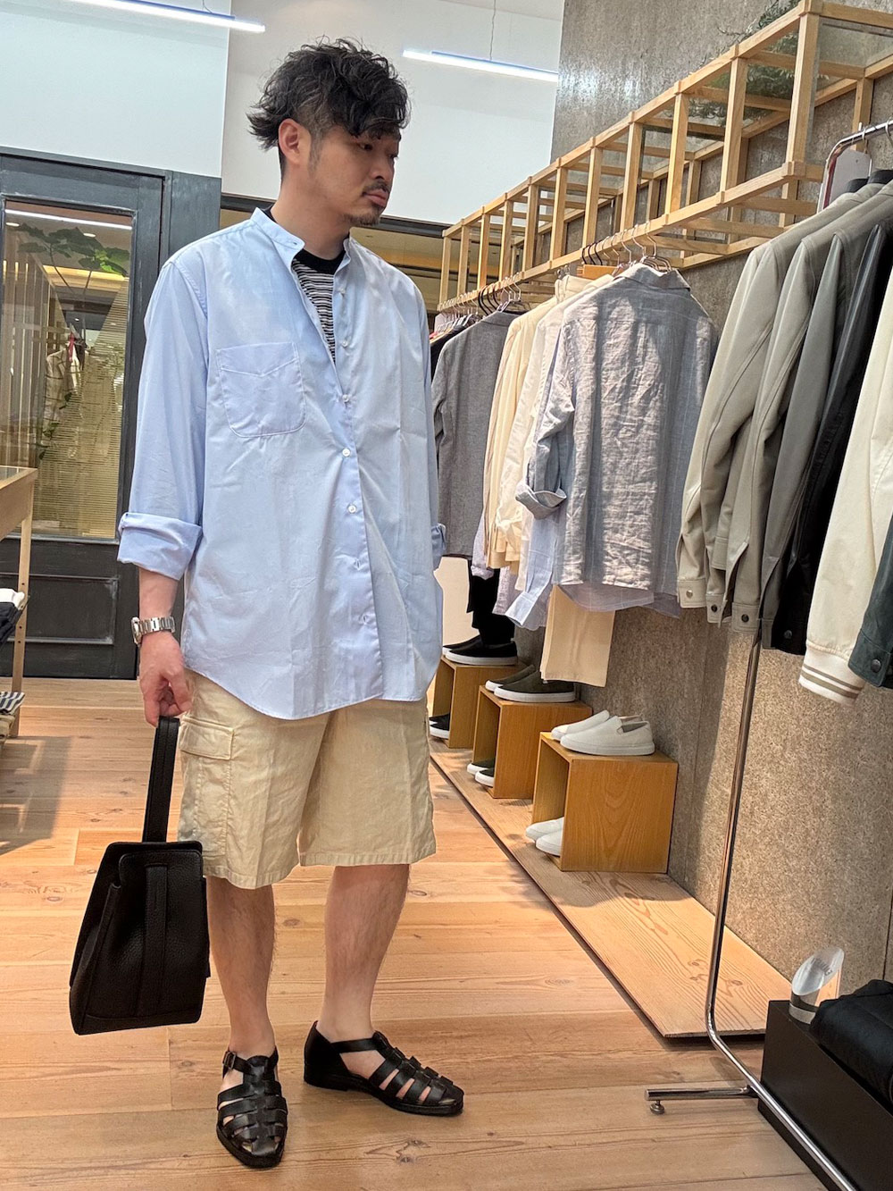 | ひとこと | サイズ46でジャストサイズです。ウエストはジャストサイズで、膝の少し上ぐらいの丈感になります。珍しい素材感のカーゴショーツです。 |
