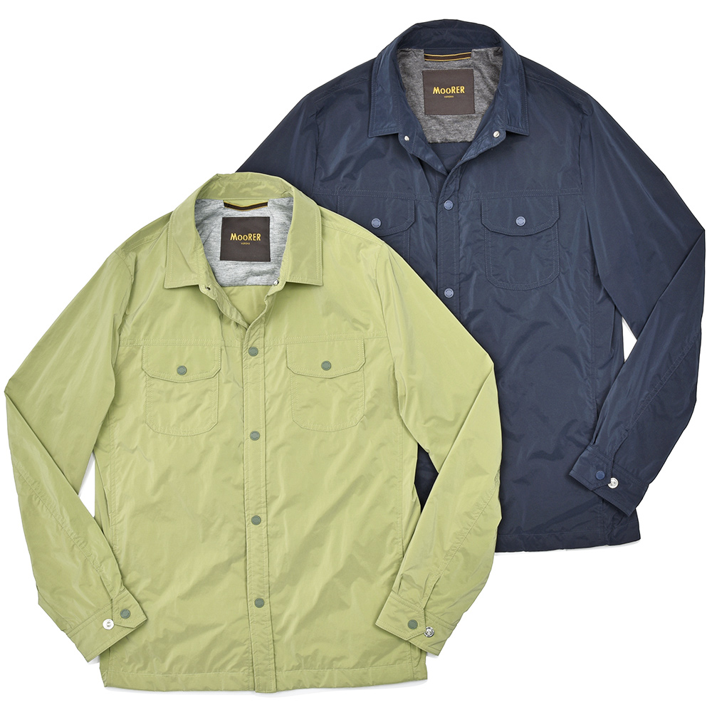 ナイロン×ポリエステルの軽量でマットな光沢感が特徴的な“OS”ファブリックを使用したこちらは、シャツ型のブルゾンモデル“ATLAS”。5つボタンはブルゾンらしい軽快感をもたらせつつも安っぽさのないオリジナルスナップボタンを採用。袖口のカフや、腰のスリットポケットなど、ブルゾンとして必要不可欠なディティールがしっかりと搭載されています。ライトアウターは春のみならず、秋にも着れる実はロングシーズン活躍してくれるアイテムです。 特注のスナップボタン、ファスナーやホーン釦などの拘りに、裏地のナイロン素材の美しさ加えてパイピング処理を施した丁寧な仕上げ。MooRER(ムーレー)のアウターに死角はありません。 |