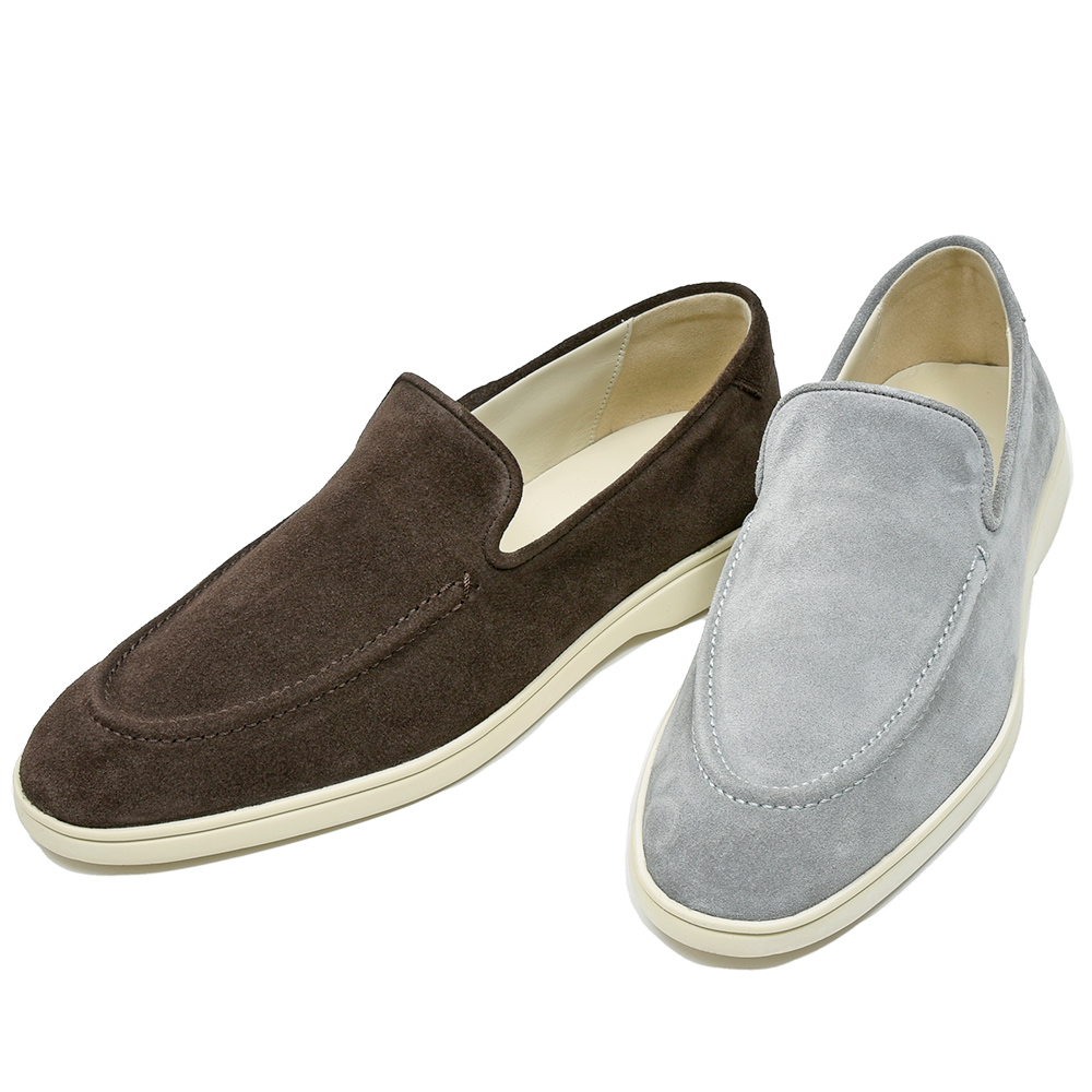 靴のつま先に沿ってピンチシームを追加したモデル“DEBONAIR”。踵と、足の甲から爪先にかけての部分はアンラインニングとなった、非常に軽快な履き心地になります。踵はライニングが無いことで折り畳むことができ、また上質で柔らかなカーフスエードをアッパーに使用しているため、足の甲や爪先のアンライニングをダイレクトに感じられるしなやかな足あたりです。見た目には丁寧な作りのローファーですが、ラバーソールを採用しているためスニーカーと同等の履きやすさを備えています。 アッパーに使用されている上質なカーフスエードは勿論、インナーレザーや天然ゴムを使用したソールに至るまで、全てイタリア製の素材を使用しています。また、インソールにはクッションを何層にも重ねることで土踏まずのアーチをサポートし、高級紳士靴に使用されるシャンク入りのアウトソールを採用することで、包まれるような履き心地と安定感を実現。スウェーデンのストックホルムでデザインされたC.QPは、世界屈指のハイブランドのスニーカーを請け負うポルトガルの工房で、熟練の職人がハンドメイドで作り上げています。上質な素材と卓越した技術によって、このC.QPらしいラグジュアリーな雰囲気が生み出されています。 【商品特徴】 ・スリッポンタイプ ・アッパーはイタリア製のカーフスエード ・ソールもイタリア製のアタランタソール ・アンライニングの部分が多い ・C.QPの他のモデルに比べて少し狭い作り ・オールシーズンで着用できる ・ポルトガル製 |
