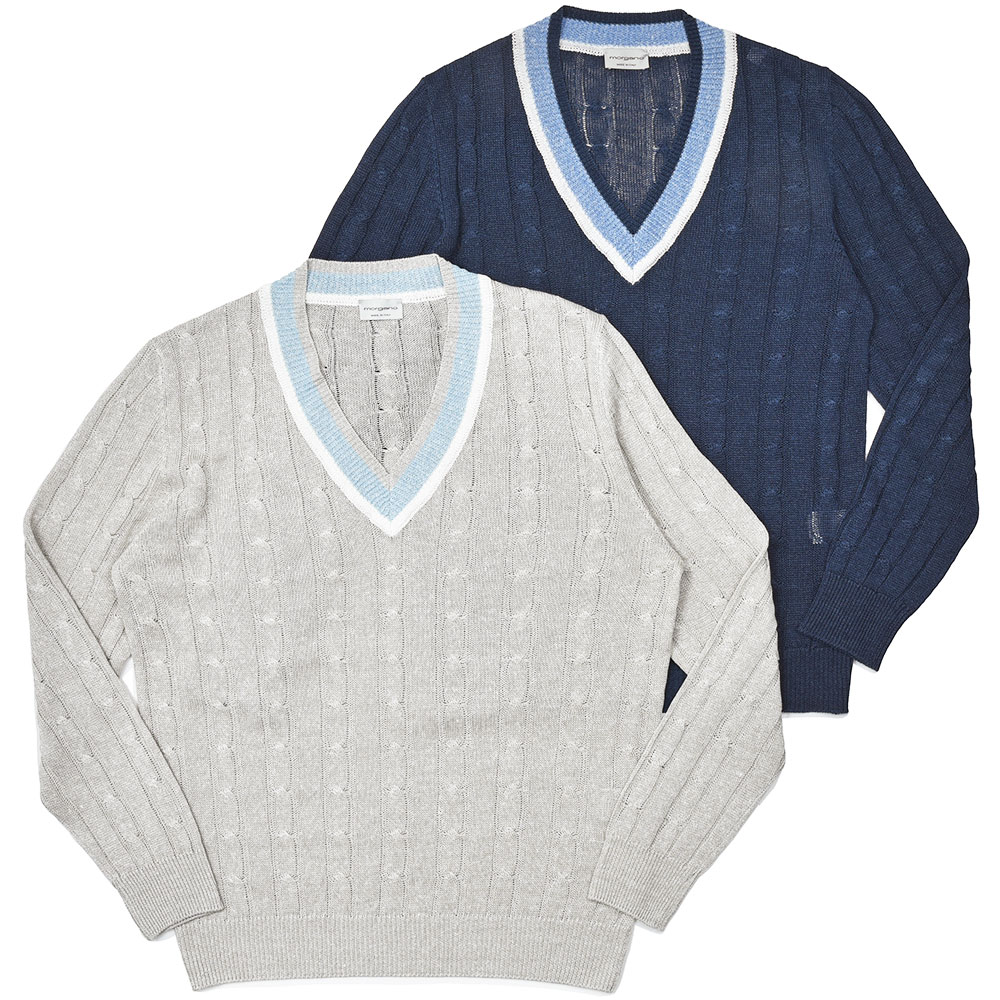 リネン コットン 7ゲージ ケーブル Vネック チルデンニット 36051001085