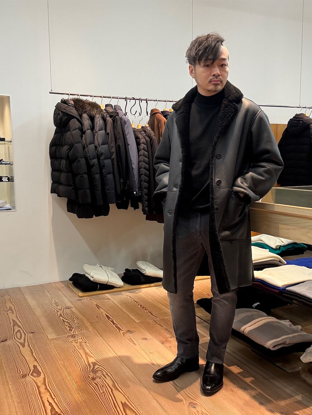 | ひとこと | サイズ48でジャストサイズです。全体的なシルエットはスリムでスッキリとした印象ですが程良くゆとりもあり、ちょうど良いフィット感です。ジャケットなどの下に着用してもちょうど良いサイズ感です。もう少しタイトにピッタリと着用するならサイズ46を選んでも良いかもしれません。 |