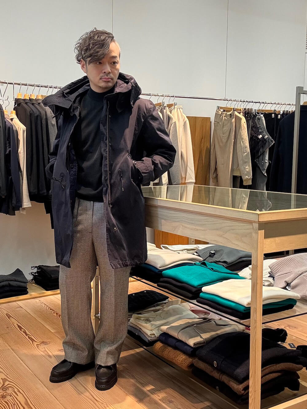 スタイリングに小慣れた雰囲気をもたらせてくれるモックネックニットは、今や市民権を得た定番アイテムと言えます。