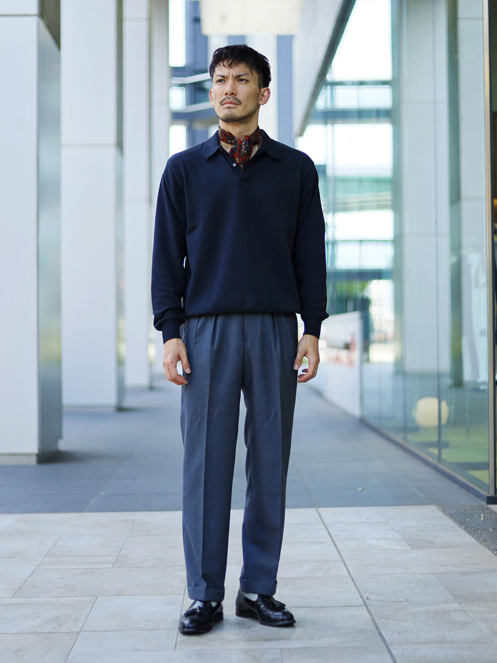 モデルデータ 身長182cm 体重76kg 基本的サイズ ジャケット48・シャツ39・パンツ48(32インチ) |