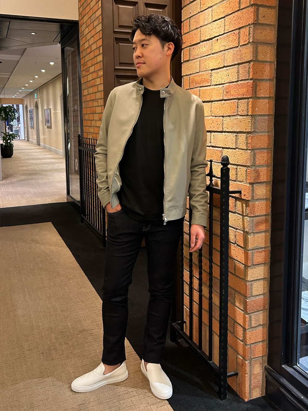 モデルデータ 身長182cm 体重76kg 基本的サイズ ジャケット50・シャツL(39〜40)・パンツ50(33インチ) |