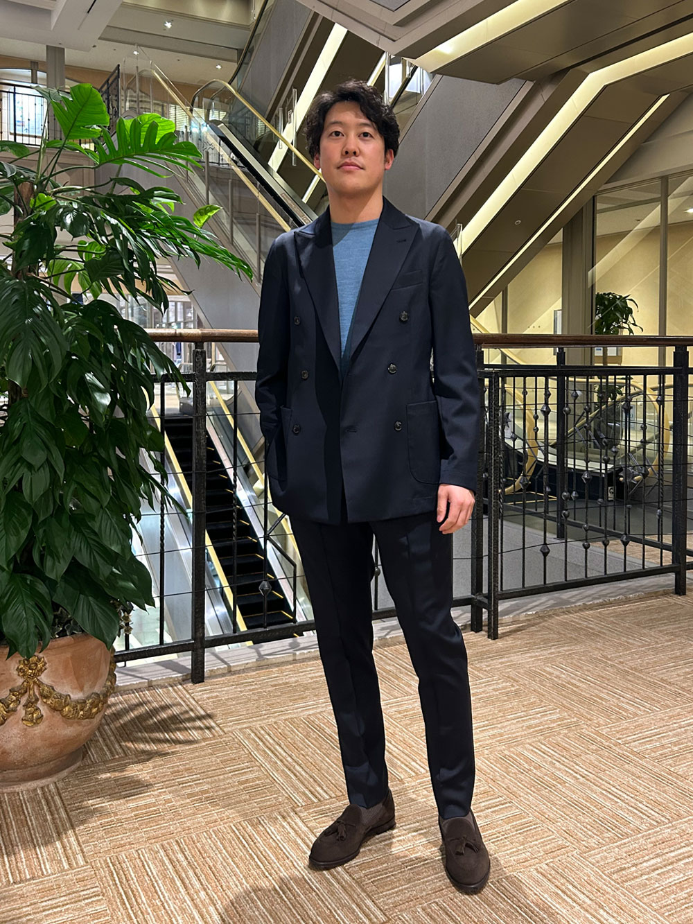 | ひとこと | サイズ46でちょうど良いサイズ感です。ハイゲージのニットを着用して肩まわりや身幅などややゆとりのあるフィット感です。サイズ44でも着用可能ですが肩まわりがタイトなフィット感だったのでサイズ46を選びます。 |