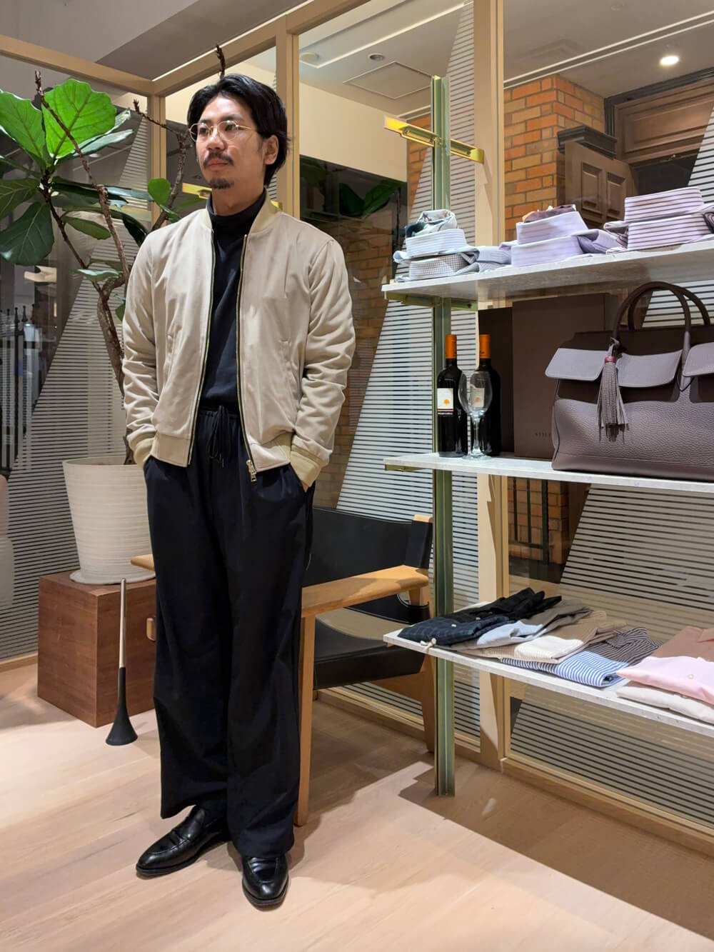 セットアップは勿論ですが、単品でもスエードブルゾンと同じような着こなしで、雰囲気のあるスタイリングが完成するジャージーファブリックです。
