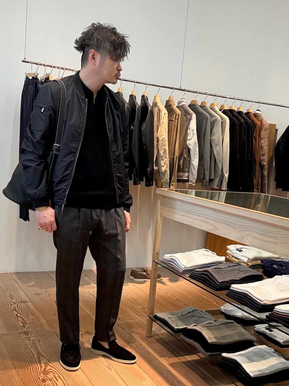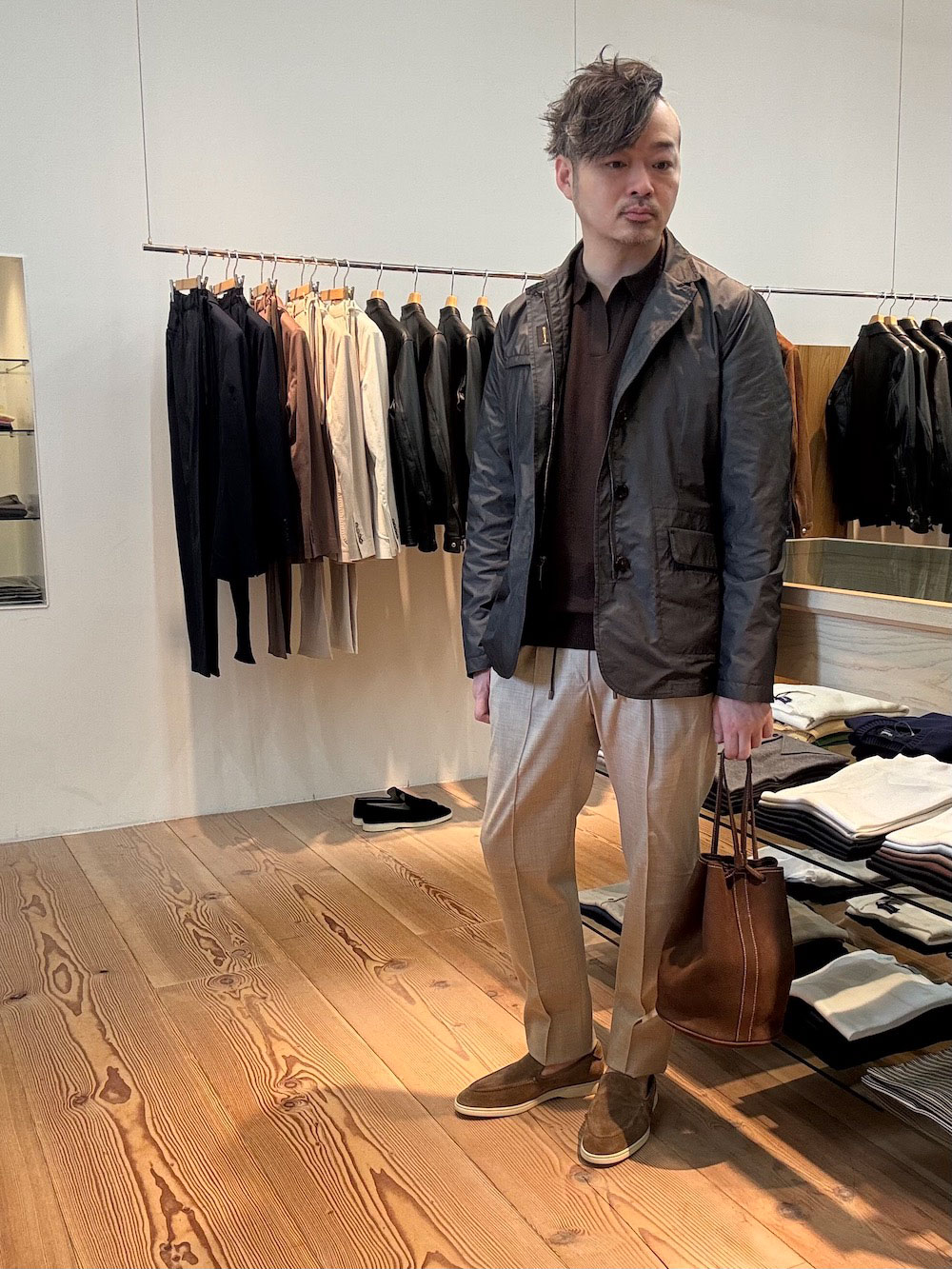 モデルデータ 身長182cm 体重76kg 基本的サイズ ジャケット50・シャツL(39〜40)・パンツ50(33インチ) |